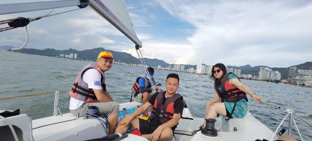 放空休息完,我們抵達(dá)玩海時(shí)代體驗(yàn)海上帆船,帆船碼頭位于合正東部灣區(qū)域內(nèi),灣內(nèi)海岸總長(zhǎng)2公里海景風(fēng)光帶,依山傍海,灣內(nèi)四季溫度適宜,風(fēng)和日麗。這里的海、山、島不僅為帆船運(yùn)動(dòng)提供了優(yōu)越的天然條件,也令運(yùn)動(dòng)樂趣更加豐富精彩。出海前專業(yè)教練對(duì)我們進(jìn)行了相關(guān)帆船基本操作講解,每船乘坐了5-6人,隨著帆船慢慢駛出港口,在風(fēng)力的作用下船速逐漸加快,風(fēng)大的時(shí)候船身傾斜,半個(gè)身子落入水中,乘風(fēng)破浪的感覺超刺激!