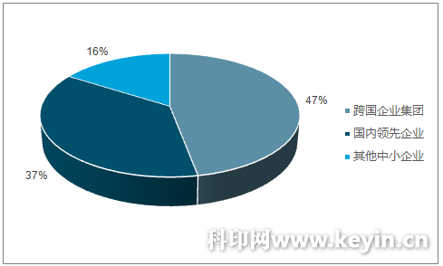 目前國內環保油墨行業主要由跨國企業集團、大型國內企業和其他中小企業組成。在 2014 年度環保油墨銷售總額中,跨國企業集團銷售占比為 47.00%,占據最大的一塊市場份額。