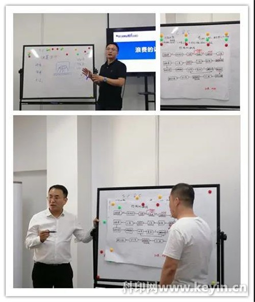 培訓過程中,各個小組成員通過學習,繪制了生產過程中如何快速換線的流程圖,胡德軍老師、傅強老師、謝曉老師現場分別聽取了各個小組在換線過程中存在的浪費問題,并進行了現場指導,細致地提出了相應的整改建議和方法,給學員企業未來快速換線工作的開展指明了方向。