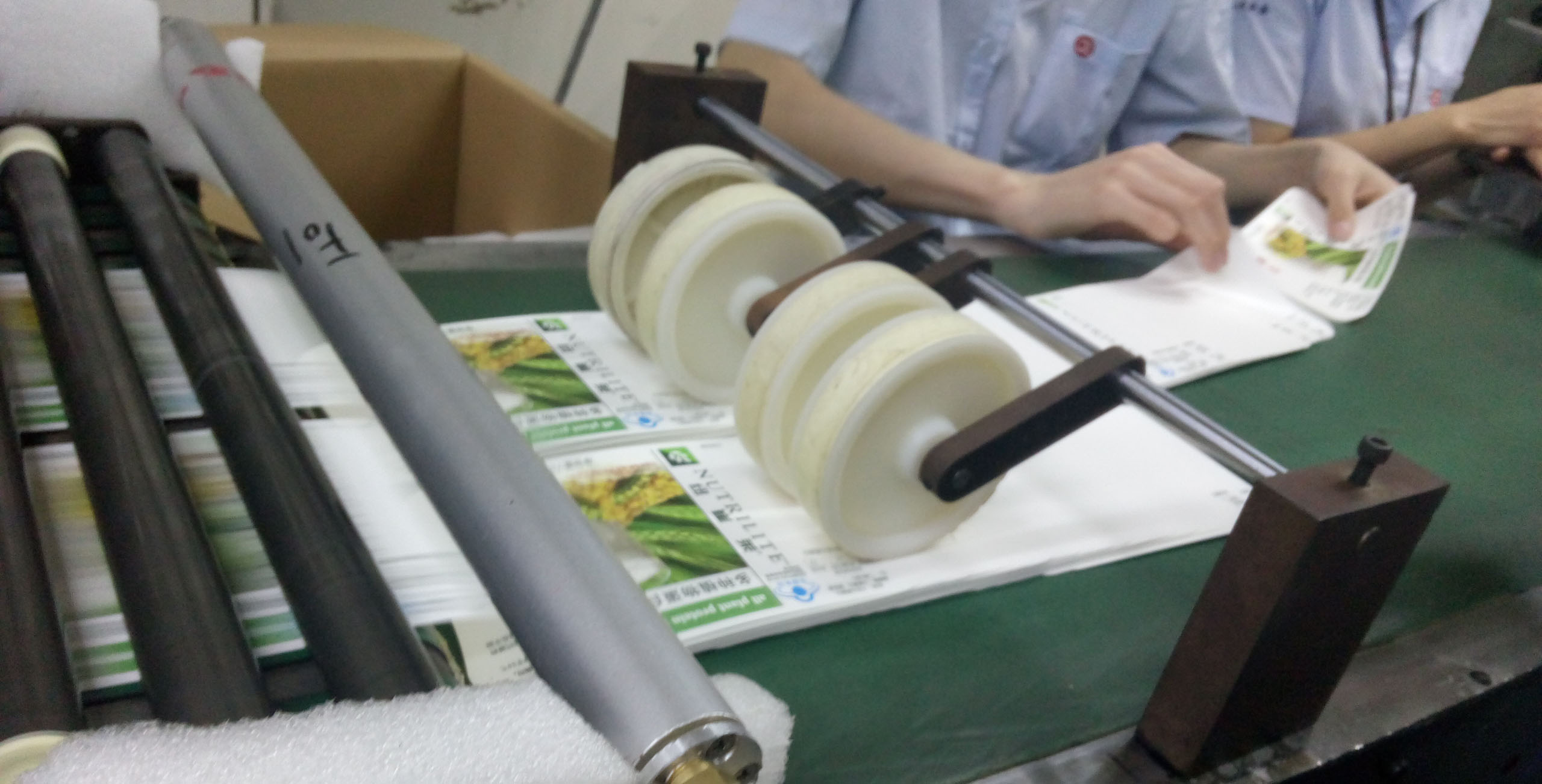 如果經過以上排查,仍未發現故障原因,就應該考慮叼牙滾軸是否有不滾動的現象,這一點極易被忽視,在此提醒各位業內人士一定要給予足夠的重視。如果印品出現連續性的重影,并伴隨有偏色現象發生時,應特別考慮叼牙滾軸是否出現故障。尤其是如果出現重影的形式為一張有重影、一張無重影,印品的偏色情況是一張正常、一張有偏色,那么就無須檢查以上6項內容,故障原因基本可以鎖定為“兩個叼牙滾軸有一個不滾動”了。出現這類問題,應對不能轉動的叼牙滾軸進行上油、松動處理。如果叼牙滾軸能夠松動,則應對兩個牙軸進行校正,確保叼牙叼力均勻;如不松動,則應拆除更換。