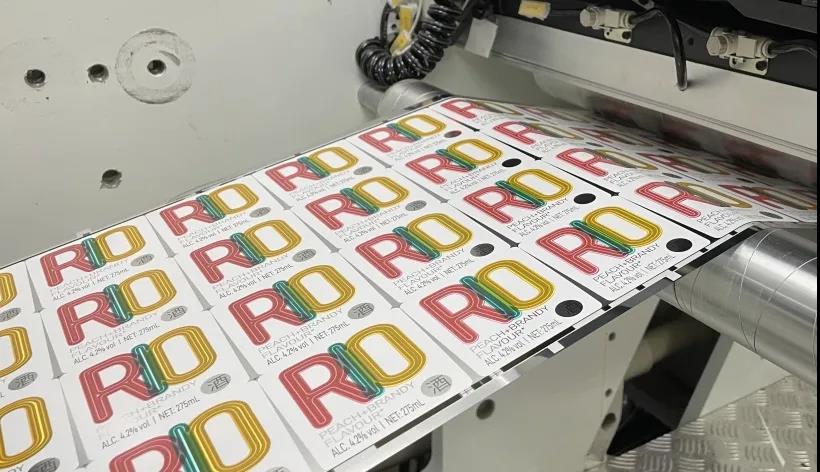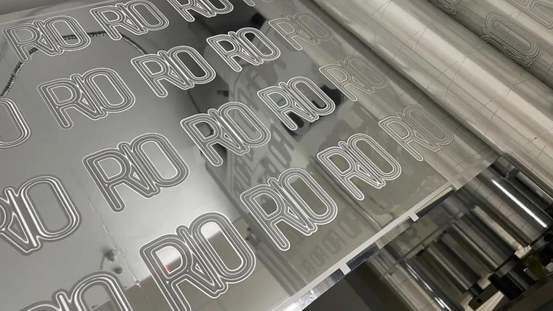 預(yù)先制作好的鐳射效果,再進(jìn)行定位套印。標(biāo)簽表面的逆向光油處理,與浮雕效果的字母形成了啞與亮的對比,也讓產(chǎn)品在貨架上有更好的吸睛作用。