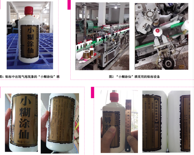 這家白酒生產企業是位于貴州省仁懷市茅臺鎮的貴州小糊涂仙酒業有限公司,出現貼標氣泡問題的產品是“小糊涂仙”經典系列52°濃香型白酒,見圖1。