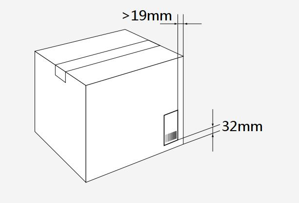 答:一個(gè)物流單元通常需要兩個(gè)標(biāo)簽標(biāo)識,并固定在相鄰的兩個(gè)側(cè)面上。如果實(shí)際情況不允許,每個(gè)物流單元最少要有一個(gè)標(biāo)簽。 2. 問:物流標(biāo)簽位置應(yīng)如何放置?答:高度低于1m的物流單元:對于高度低于1m的紙板箱與其他的物流單元,標(biāo)簽中SSCC的底邊應(yīng)距離物流單元的底部32mm,標(biāo)簽與物流單元垂直邊線的距離不小于19mm,如下圖所示。