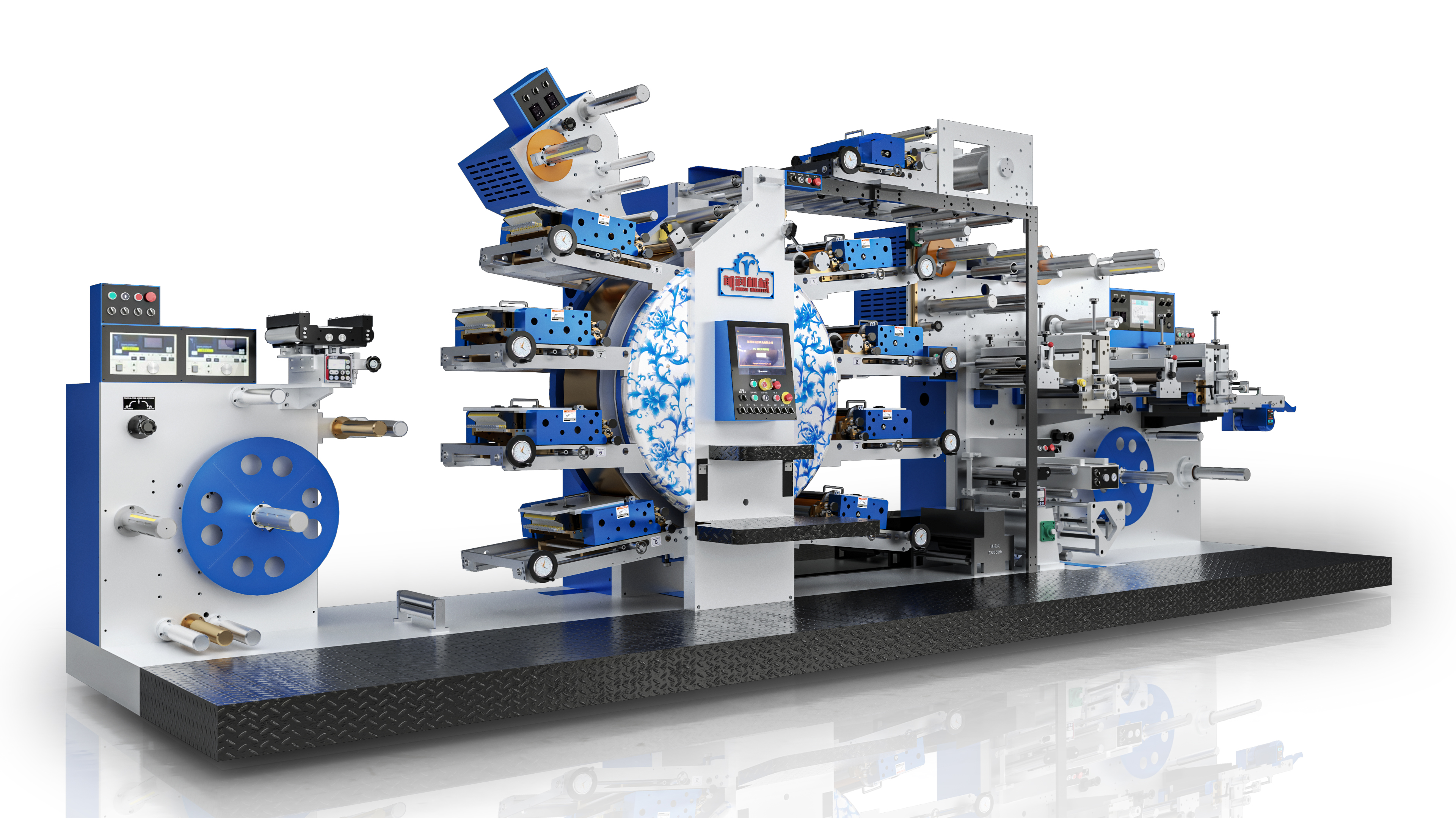 2,半輪轉印刷機。它只印刷不模切,相比商標機,印刷速度快、品質好、色數多,最多可印刷8色。